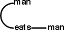 There are two lines of identity in this graph: the curve on the left, and the straight line on the right. In the algebraic notation, each line of identity corresponds to an existential quantifier, which Peirce represented by the Greek letter Σ. The graph could therefore be represented by the following formula in Peirce’s notation of 1885:This syntax is so simple that I will describe it. Every word makes an assertion. Thus, —man means "there is a man" in whatever universe the whole sheet offers it. The dash before "man" is the "line of identity".