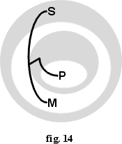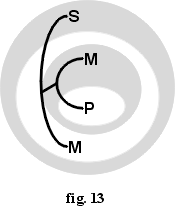 The second step is simply to erase "Any M is P" by the 1st Permission. The third step is to join the two ligatures by the 1st Permission as shown in fig. 13: