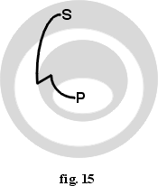 while the Sixth step authorized by permission the third consists in getting rid of the empty ring shaped shaded area round the P, giving fig. 16.